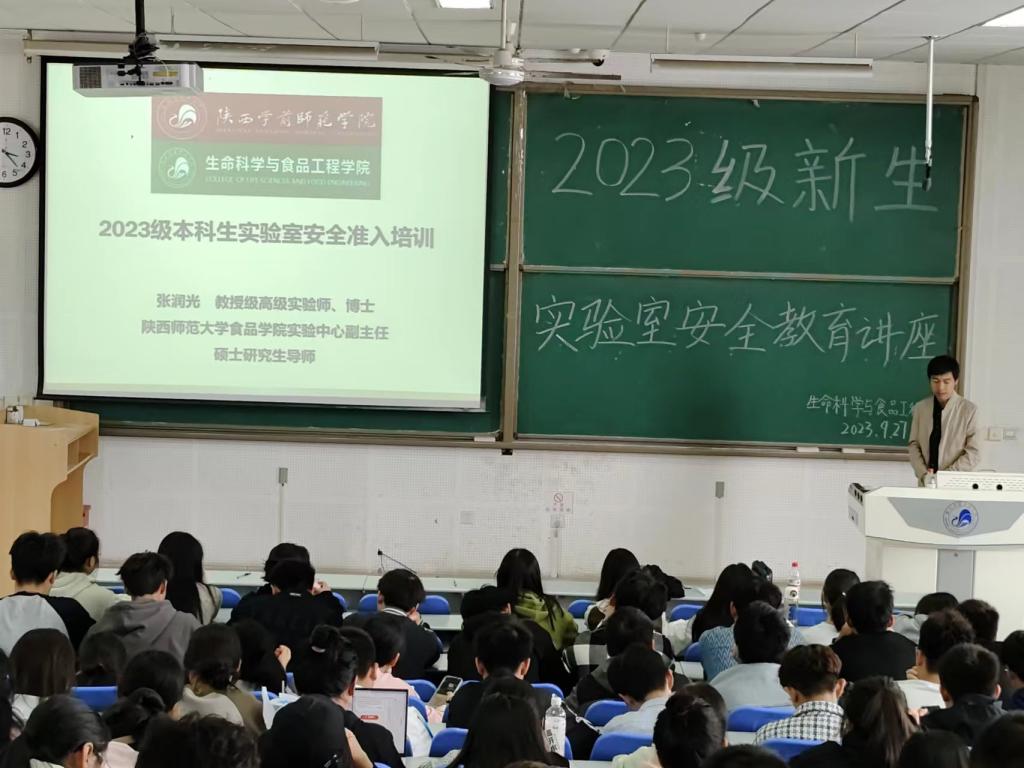 开学典礼结束后,学院特邀陕西师范大学食品学院实验中心副主任、硕士生导师、正高级实验师张润光博士为2023级全体新生做了实验室安全教育培训讲座,学院实验教学示范中心全体教师参加了培训。