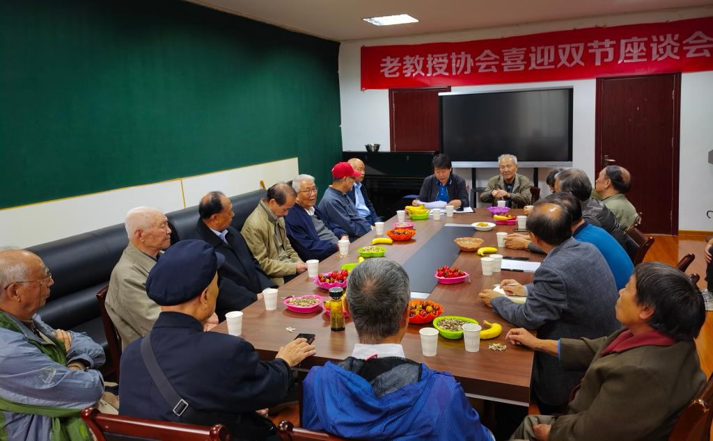 金秋时节,丹桂飘香。9月26日上午,在中秋与国庆双节到来之际,学校老教授协会在雁塔校区老干部会议室召开喜迎双节座谈会,畅谈祖国发展的大好形势,共话今日美好生活。老教授协会常务副会长王耀辉教授主持座谈会。