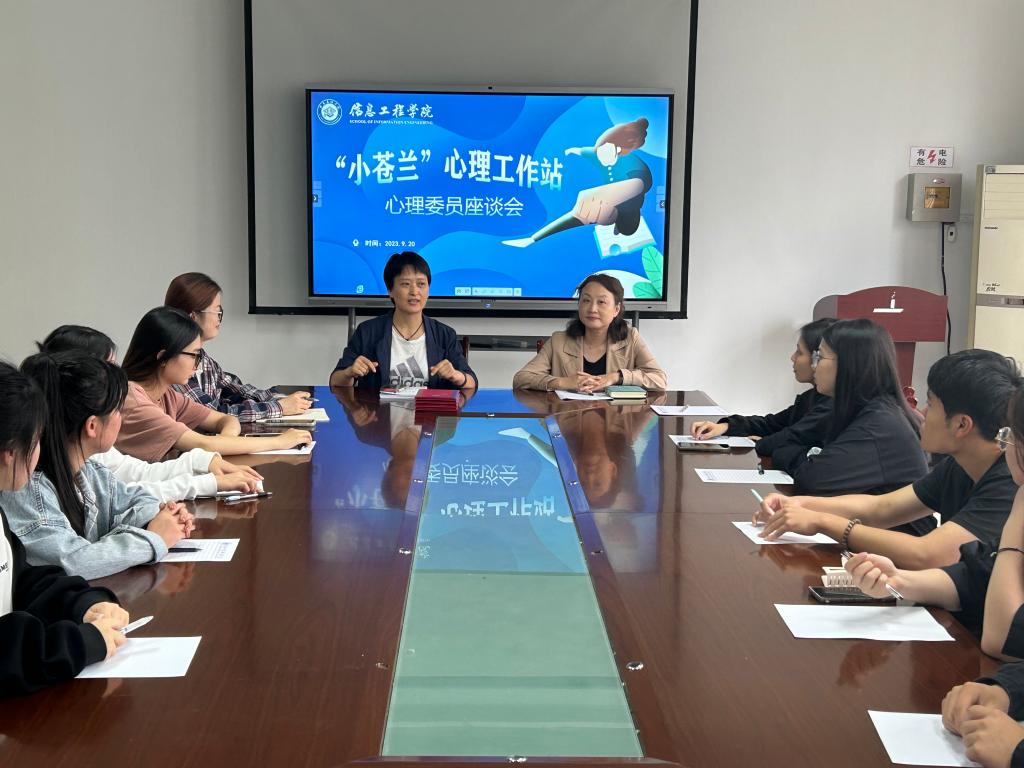 2023年9月20日,信息工程学院“小仓兰”心理工作站于积学楼A204正式建站并召开了第一次心理委员座谈会。院心理工作站副站长主持,院党委副书记参加。
