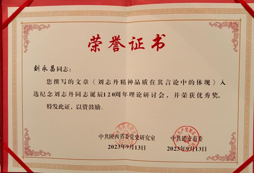 刘永昌副教授积极参加了纪念刘志丹诞辰120周年征文活动,投稿的《刘志丹精神品质在其言论中的体现》一文入选纪念刘志丹同志诞辰120周年理论研讨会,并荣获优秀奖,在此表示热烈祝贺,感谢刘副教授为申搏统战事业再立新功。