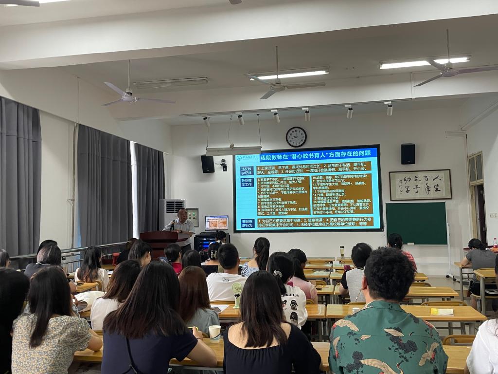 院党委副书记王继康带领全体教职工学习《新时代高校教师职业行为十项准则》,他强调,要把好教师入口关,在教师招聘、引进时组织开展准则的宣讲,确保每位新入职教师知准则、守底线,引导广大教师努力成为有理想信念、有道德情操、有扎实学识、有仁爱之心的好老师,着力培养德智体美劳全面发展的社会主义建设者和接班人。