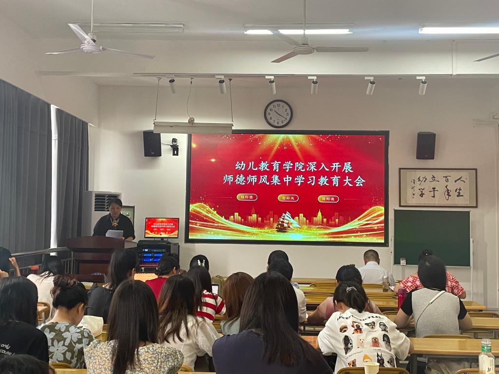 本次师德师风集中学习教育大会,重在教育,重在引导,重在建设。我院通过扎实工作来实现思想认识的提高,实现教师的自我完善和成长。努力营造树师德、铸师魂、正师风的良好氛围,引导和激励广大教职工自觉加强思想建设、道德建设和作风建设,真正成为学生的楷模和表率。