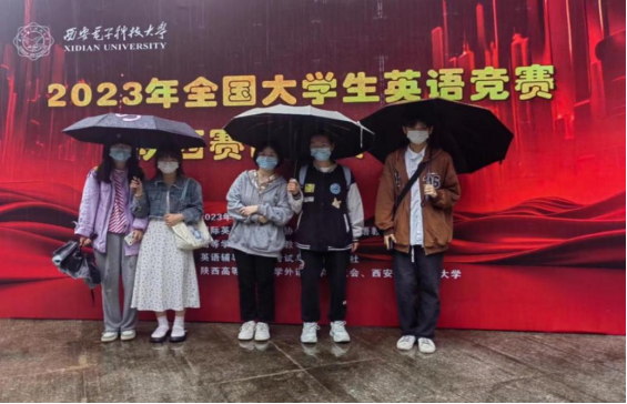6月3日,入围省赛的5位选手赴西安电子科技大学参加了2023年全国大学生英语竞赛陕西赛区复赛,虽然大雨滂沱,选手们按时到达比赛场所,沉着冷静,认真答卷,最终5人均取得了陕西赛区复赛一等奖的好成绩。同时外国语学院徐金鑫同学、文学院杨乐怡同学脱颖而出,将代表申搏参加2023年8月2日—7日在银川举行的全国大学生英语竞赛总决赛。