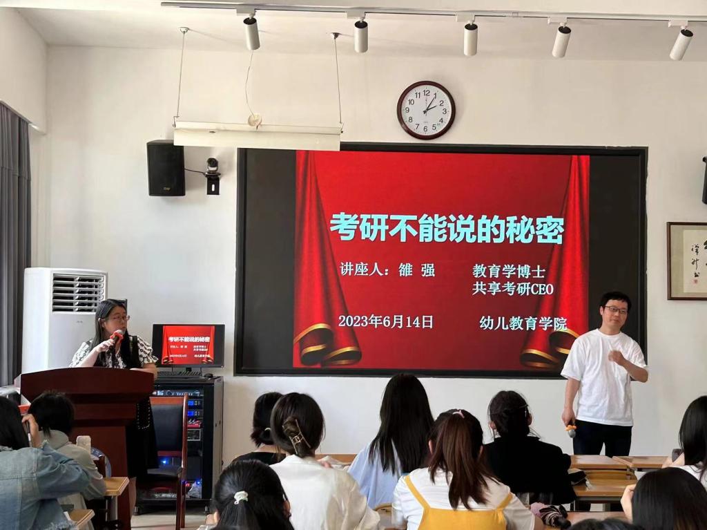 为进一步提升人才培养质量,切实加强学风建设,扎实推进2024届本科生考研工作,6月26日下午,幼儿教育学院邀请雒强博士在启真楼315教室为2024届本科生举办考研指导专题讲座。2020级有意向考研的80余名学生参加了讲座。讲座由学院学工办主任程旭楠主持。