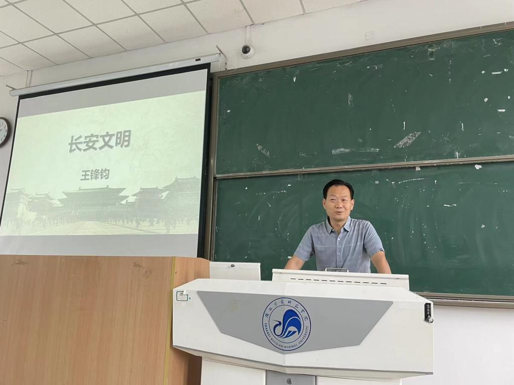 6月16日下午,历史文化与旅游学院邀请半坡博物馆副院长王锋钧,在一教B2阶梯教室,以《长安文明》为主题做了一场专题讲座。王锋钧,现任半坡博物馆副院长、研究馆员。长期从事文化遗产管理与保护和西安地方史志研究。在海内外文博类专业期刊和《人民日报》《光明日报》发表学术论文43篇,编著《长安文明》《中国文物小百科》等18部图书。