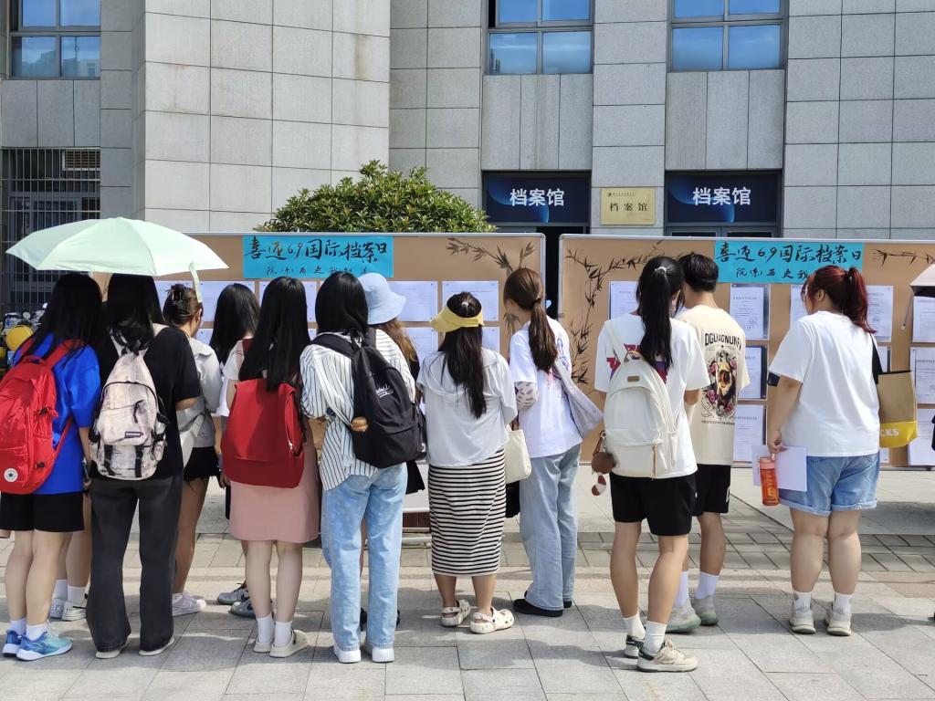 为迎接第16个国际档案日, 6月9日档案馆在图书馆广场举行“喜迎6.9国际档案日·院系历史我知道”展览活动。本次展览以馆藏档案为基础,全方位展示学校十四个学院的历史沿革,通过详细的历史沿革表展示了各学院的发展历程,并将相关的历史档案文件一一展示,是档案馆对馆藏档案的开发利用。本次展览联合美术学院,安排学生参与布展。通过展览,希望师生了解自己学院的发展历程,继而热爱自己的学院。同时,也是档案馆贯彻落实党的二十大精神,坚定文化自强自信的一次活动。