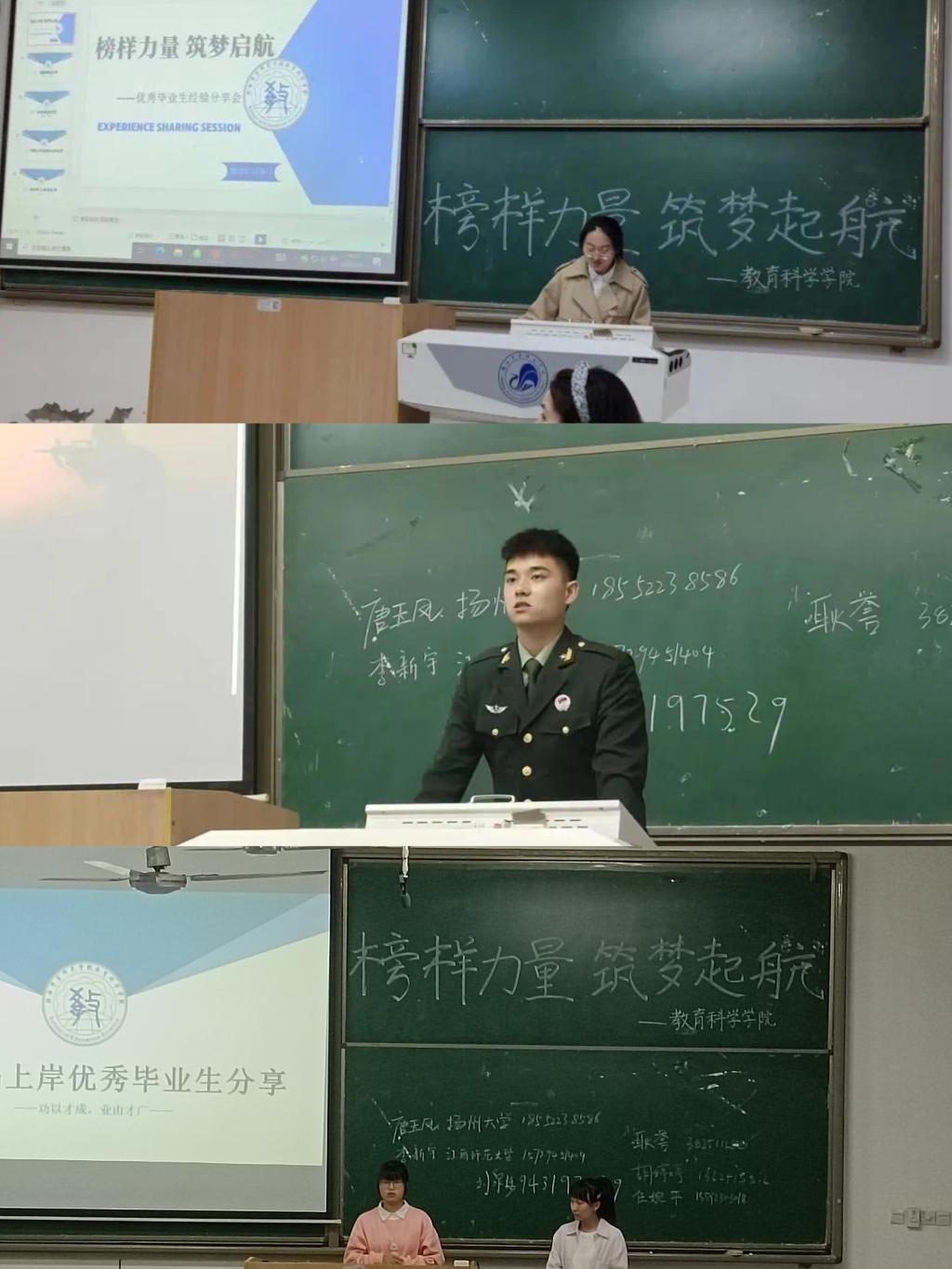 【历史文化与旅游学院】为进一步发挥优秀学生的示范和引领作用,教育和引导广大学生努力学习,奋发拼搏,树立理想信念,练就过硬本领,历史文化与旅游学院于近期集中开展了“身边的榜样”系列宣讲活动。宣讲人包括我院退役士兵,励志奖学金获得者,考研成功学生,从不同层面展现了我院优秀学生的风采。