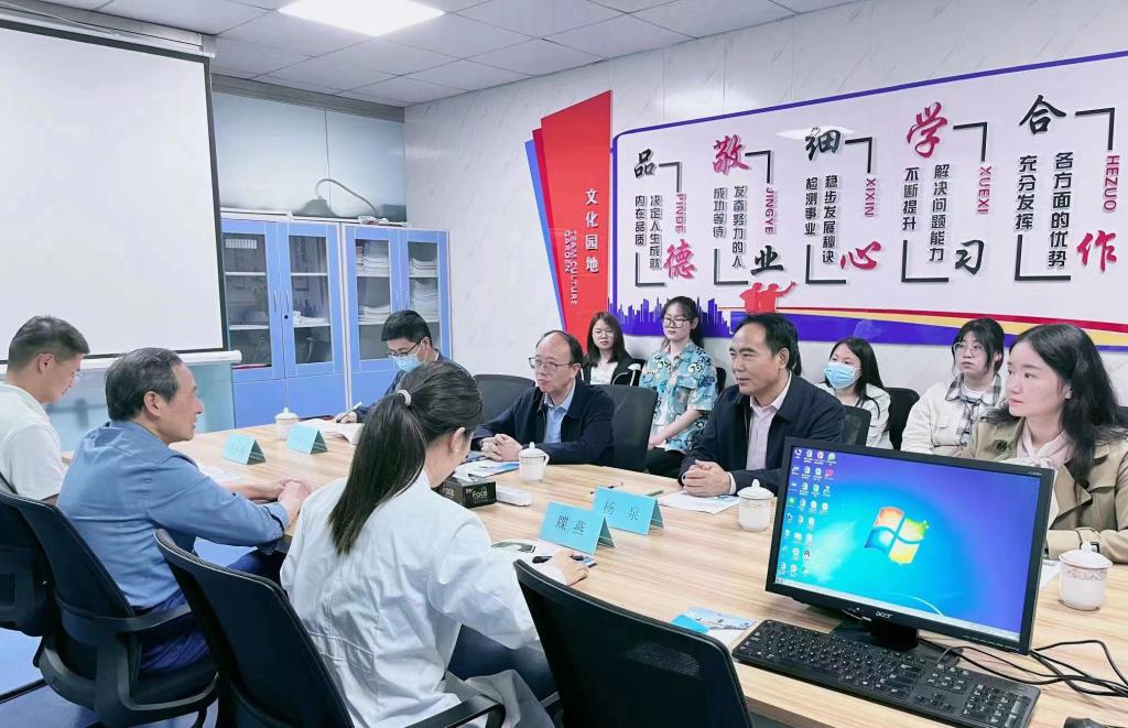为贯彻落实全国全省2023届普通高校毕业生就业创业工作会议精神,对接企业用人需求,拓宽毕业生就业渠道和资源,全力促进毕业生更加充分更高质量就业,2023年5月31日下午,副校长唐宏带队化学化工学院赴陕西华博检测技术有限公司开展访企拓岗专项行动,化学化工学院党委书记杨泉、副书记彭晓江、毕业班辅导员任洁,以及六名毕业生随行。陕西华博检测技术有限公司总经理杨定友、高级工程师牒燕、屈小科对sunbet申搏官方网站师生的到来表示热烈欢迎,并与师生进行了深入交流。