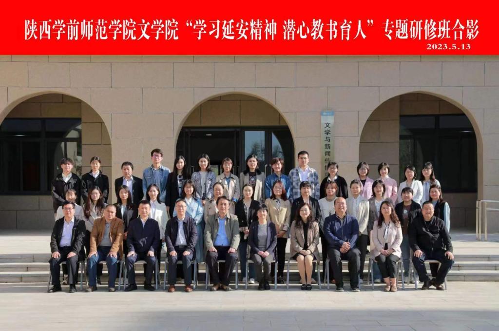 为进一步加强汉语言文学省级一流本科专业建设,推进主题教育走深走实,引导教师传承延安精神,坚持立德树人,5月12—14日,文学院“学习延安精神,潜心教书育人”专题研修班在延安大学文学院举行。我院33名师生参加研修,延安大学文学院院长王俊虎主持研修班开班仪式,该院班子成员参加仪式并陪同调研交流。