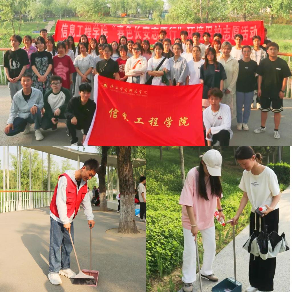 为进一步贯彻落实中共中央、国务院《关于全面加强新时代大中小学劳动教育的意见》以及《sunbet申搏官方网站关于落实新时代劳动教育实施方案(试行)》的通知(陕师院综[2021]46号)文件要求,推动“三全育人”成效,在2023年“五一国际劳动节”来临之际,信息工程学院团总支联合学生会组织策划于4月19日下午开展了“春色长安·志愿行”劳动服务活动,组织同学们前往长安区樊川公园进行卫生清洁和环保知识宣传。