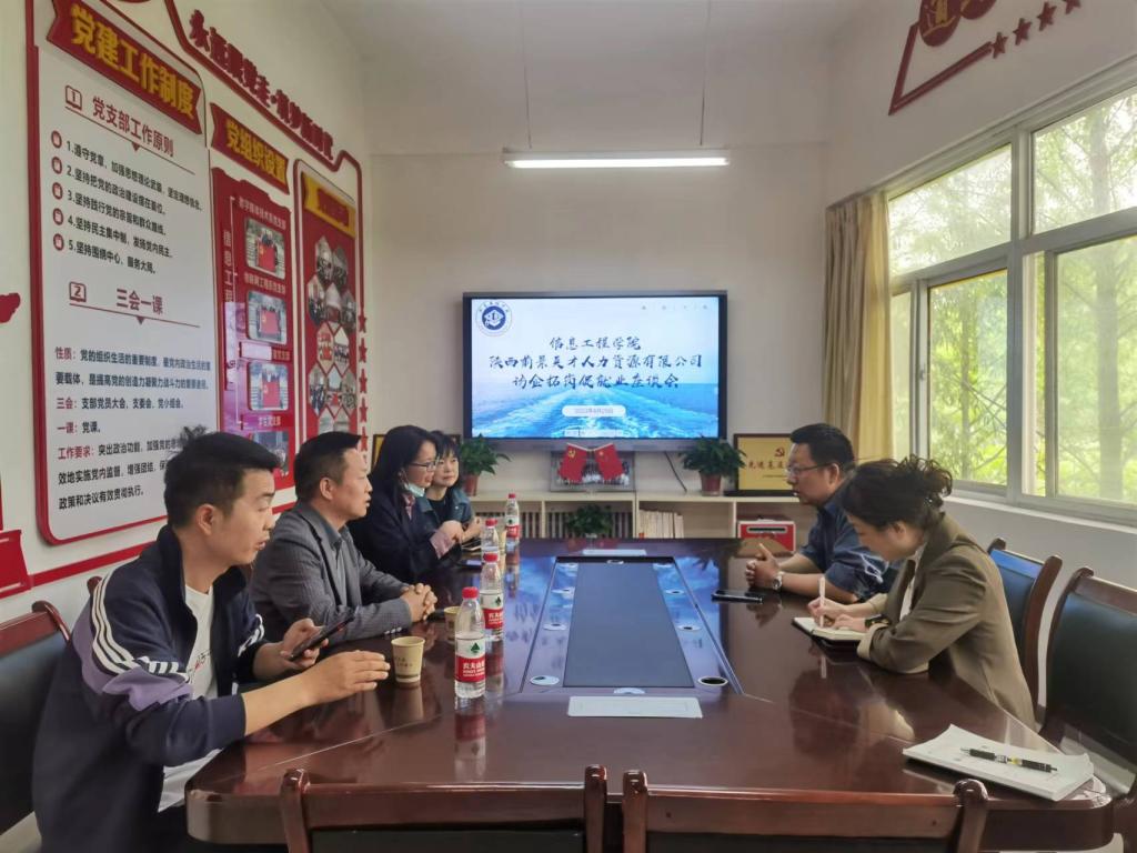 2023年4月20日上午,信息工程学院联合陕西前景英才人力资源有限公司在积学楼A202开展访企拓岗促就业座谈会并在积学楼四教阶2开展专场招聘会。