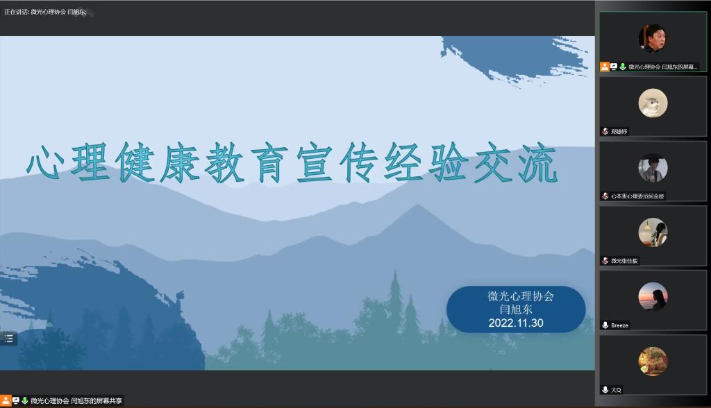讲座结束后,微光心理协会部长闫旭东同学跟大家介绍了申搏心理社团的性质及工作内容,并从自身工作实践和思考总结出发,为新一级心理委员分享了开展心理健康宣传工作的经验、技巧和自我提升的途径、方法,不仅让新生心理委员们对社团工作有了更多的了解,而且启发了他们对自身工作的思考。
