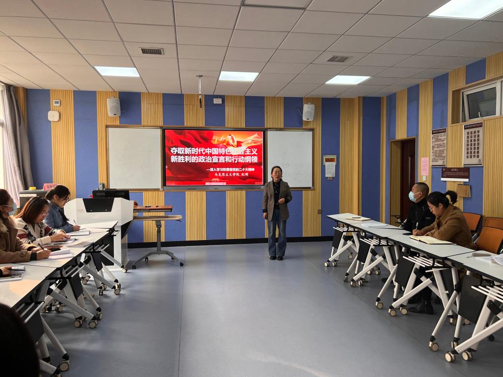 为深入学习贯彻党的二十大精神,切实提高辅导员队伍思想引领能力,11月17日下午3:30,由学工部主办,马克思主义学院承办的2022年第23期辅导员沙龙活动在博文楼C203智慧教室成功举办。本次沙龙活动特邀请全省党的二十大精神“马院院长宣讲团”成员、申搏马克思主义学院副院长(主持工作)纪明同志作党的二十大精神专题报告。党委学工部副部长王成富,幼儿教育学院、马克思主义学院、美术学院、化学化工学院的党委副书记及专职辅导员参加了本次沙龙。沙龙由马克思主义学院党委副书记白艳主持。