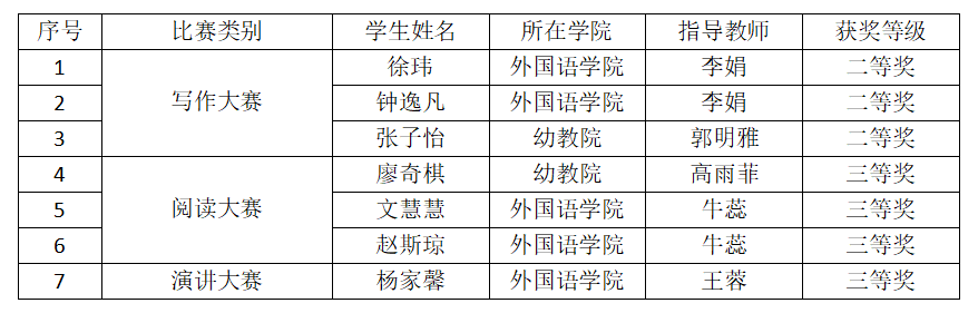 11月5日“外研社·国才杯”全国大学生英语写作、阅读和演讲大赛复赛在西安文理学院成功落下帷幕,申搏于2022年10月25日在线举行初赛,来自14个学院的330名学生参加了比赛,108名同学荣获校赛特、一、二、三等奖。在陕西省赛区复赛中,来自外国语学院、幼儿教育学院的7名优秀选手最终取得二等奖3项、三等奖4项的好成绩。