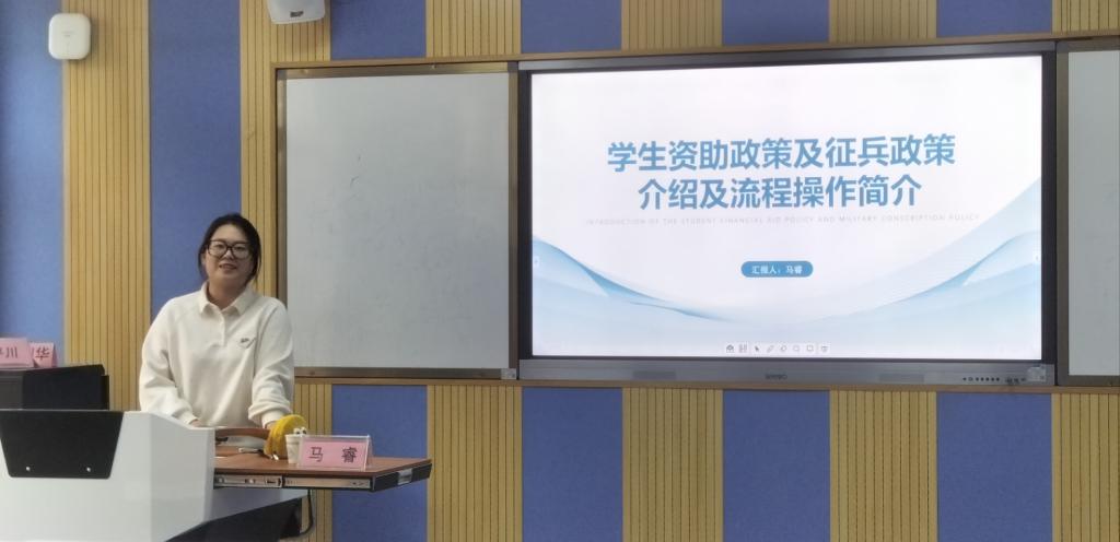 马睿老师从充分认识高校学生资助工作重要意义入手,详细介绍了奖学金、助学金和生源地贷款的办理流程和认定标准,以及减免学费的相关政策。同时在大学生应征入伍事项方面,马睿老师要求新任职辅导员要熟悉学生应征入伍的相关办理手续和流程,完善工作机制,做精准认定的实施者,建立后续跟踪机制,做精准资助的管理者,将资助和育人结合,做励志学生的领路者。
