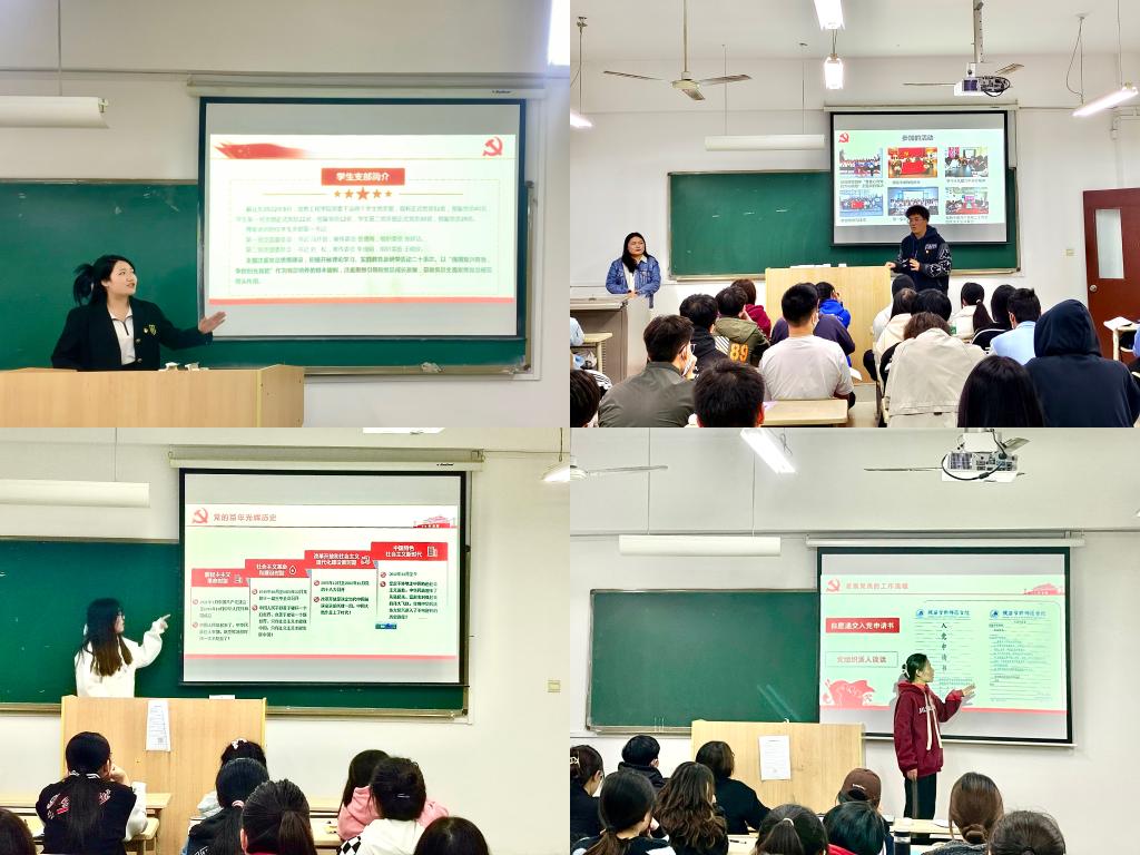 为深入学习贯彻习近平新时代中国特色社会主义思想,加强党员教育管理,提高党员队伍建设质量,严把党员发展入口关,确保我院党员队伍的纯洁性和先进性,信息工程学院学生党支部合理规划新生入党启蒙教育,积极落实“早教育,早选苗、早培养”的工作要求,推进大学生党员队伍建设,2022年11月6日晚19:00,我院党员先锋进入2022级新生班级开展新生入党启蒙教育。