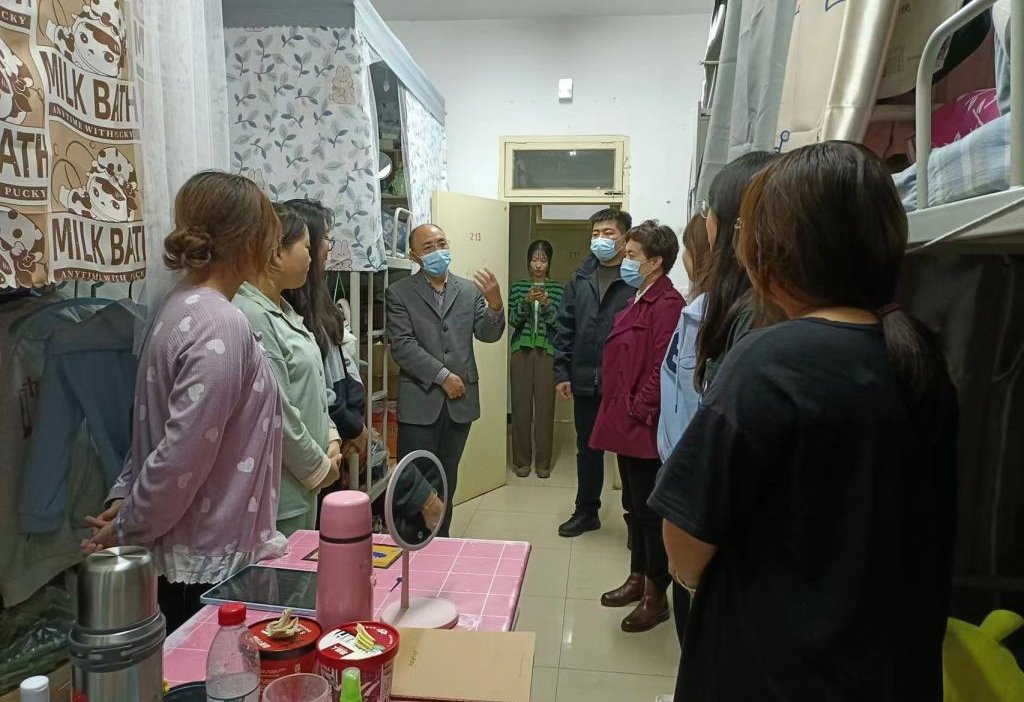 为全面贯彻落实学校疫情防控工作,切实做好在校生封闭管理服务工作,10月26日晚上7点,校党委副书记权秋虎同志、马克思主义学院班子成员以及辅导员分组深入各年级学生宿舍,了解目前学生在校阶段学习生活情况、思想动态并开展安全隐患专项检查。
