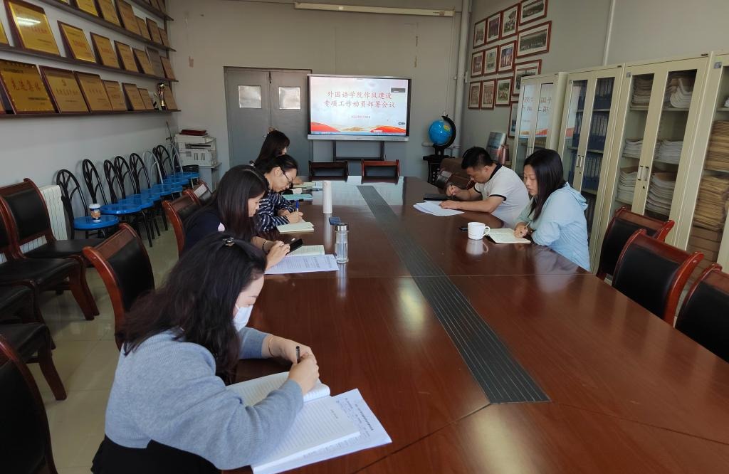 9月28日下午,外国语学院党委按照疫情防控政策的要求,以线下线上结合的方式召开了作风建设专项行动动员部署会,会议由外国语学院党委副书记高海燕主持,全体党员参加会议。