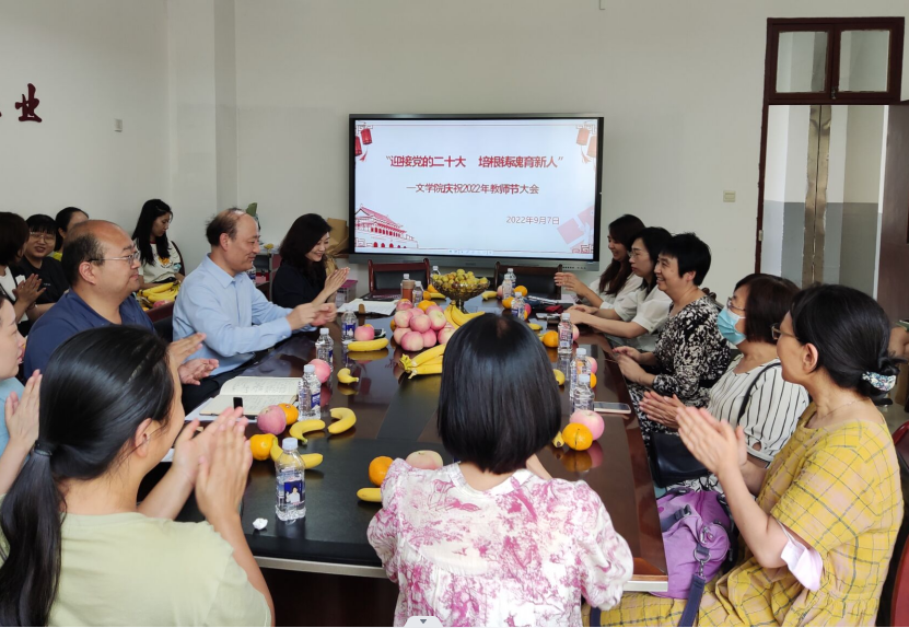 在第38个教师节来临之际,9月7日下午,文学院在博文楼A211会议室隆重举行庆祝会,全体教职工共聚一堂,共同欢庆教师节。学校党委副书记、纪委书记王凯同志参加了本次活动。会议由学院党委副书记庞曦主持。