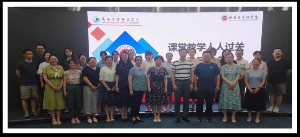为进一步提升教师的课堂教学能力,根据学校“关于开展‘课堂教学人人过关’活动的通知”(陕师院评建办函〔2022〕6 号)要求,2022年7月14日、8月17日,经济与管理学院开展全员磨课。陕西师范大学教育学部教授、博士生导师陈晓端、西安交通大学副教授吴润莅临指导我院教师磨课活动,经济管理学院院长崔洁、党委书记张建辉、副院长陈秀端、副院长刘家瑛、党委副书记陈璐以及经济与管理学院全体教师现场观摩,本轮次磨课活动由副院长陈秀端主持。