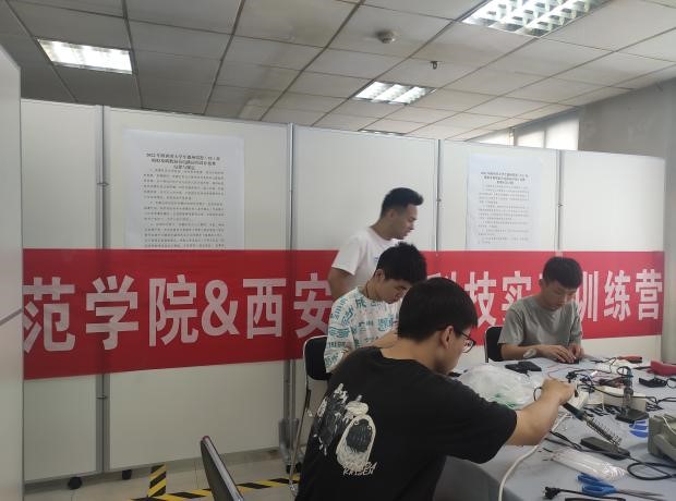 信息工程学院接到教务处下达的参赛任务后,立即组建指导教师团队,针对比赛要求开展相关调研,筹划和准备参赛相关工作。通过积极开展学生动员、报名、选拔等前期工作,最终推选出物联网工程及数据科学与大数据专业的15名同学参加本次比赛。为了能有效应对参赛设备缺乏、比赛经验缺乏、比赛场地条件不足以及疫情防控等问题,在教务处领导的支持下,信息工程学院果断决定联合合作单位西安盛图科技公司共同备赛。赛前,企业导师与全体校内指导老师一起,利用暑期休息时间对学生进行为期一周的集中强化培训,全体师生踊跃备战,废寝忘食,学习各种控制板的电路设计与代码原理;赛中,4天3夜封闭式赛制要求各参赛队通力合作、积极应战、挑战身体极限,队员们累了就在实验台边的简易床上躺一会,饿了就泡一碗方便面,最终5个参赛队均按要求提交了参赛作品;赛后,各队积极讨论、总结备赛和参赛得失,为明年再战积累了宝贵的经验。