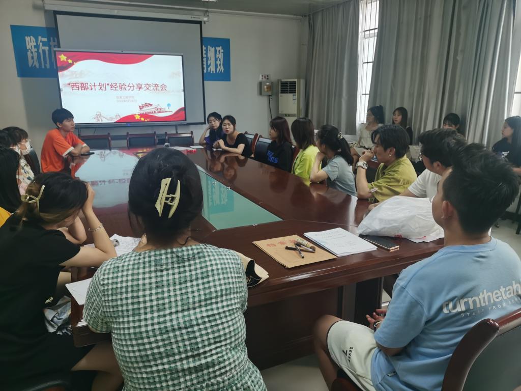 为帮助同学们加深对大学生志愿服务西部计划的认识,鼓励更多毕业生扎根基层、报效祖国、服务人民。信息工程学院于2022年6月30日下午18:00在积学楼A204举办 “西部计划”经验分享交流会。本次分享交流会特邀现为西部计划志愿者的优秀毕业生孙梦鸽、王卓、阮班林同学进行经验分享。2019级学生代表参会,会议由学工办主任主持。