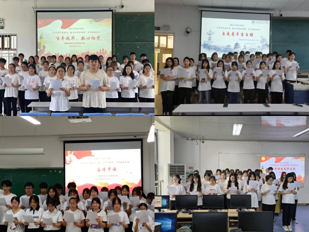 为弘扬积极向上的红色文化精神,丰富学生校园文化生活,数学与统计学院精心策划,于6月15日~29日在全院学生中开展了以“百年风华勇担当,红心向党共辉煌”为主题的红色经典系列诵读活动。学院2021、2020、2019级的学生以班级为单位全员参与。