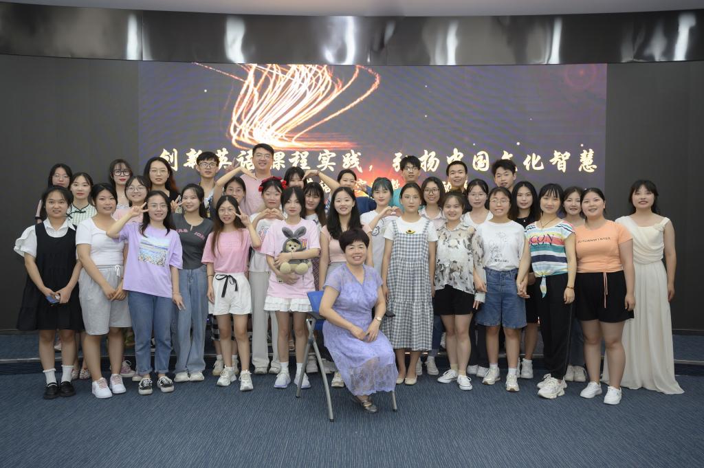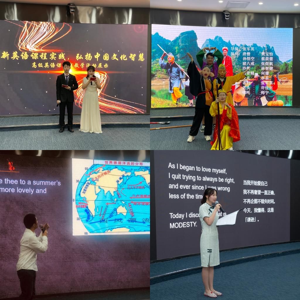 为落实新时代高等教育立德树人目标、深入推进课程思政、创新课程教学,学好英语,用英语讲好中国故事、传递中国好声音,2022年6月22日上午,在申搏师范生教学能力综合实训中心,外国语学院举办了一场《高级英语》课程“创新英语课程实践,弘扬中国传统文化”的教学实践活动。活动由承担《高级英语》课程的王秋云博士策划、组织,2019级英语专业一班、二班全体学生积极参与并展示,学院2019级近百名学生观摩。外国语学院院长张慧军、副院长张莉娟、王雨到场祝贺。