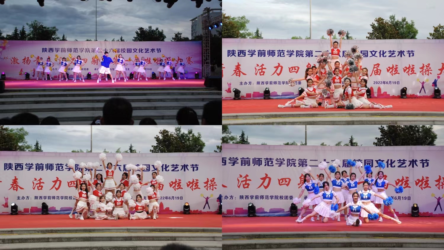 为丰富校园文化生活,展现申搏学生健康积极的青春风貌,2022年6月20日晚19点,由校团委主办,经济与管理学院承办的第二十六届校园文化艺术节“激扬青春 活力四射”第一届啦啦操大赛决赛在申搏长安校区中心广场成功举办。大赛邀请体育学院党委副书记李强、美术学院学生工作办公室主任郭园、幼儿教育学院辅导员张暾、历史文化与旅游学院辅导员任柏阳、经济与管理学院学生工作办公室副主任艾菁担任评委。经济与管理学院党委书记张建辉、党委副书记陈璐、辅导员肖欢等出席了本次活动。