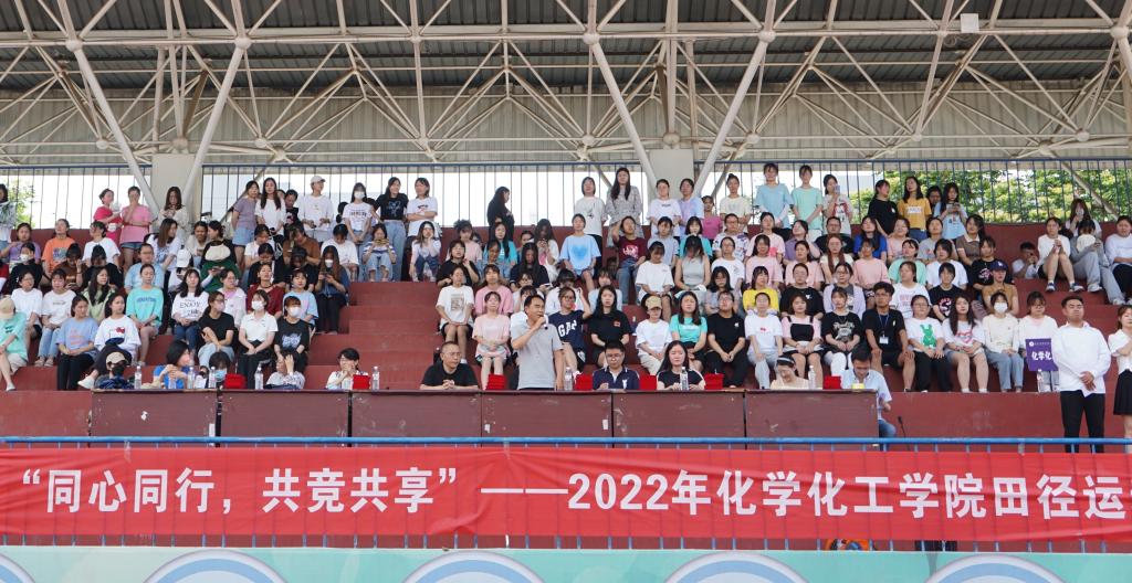 为加强校园体育文化建设,增强青年学生的身体素质,弘扬体育精神,塑造良好精神风貌,坚持五育并举,化学化工学院联合体育学院于2022年6月8日下午在申搏田径场举办“同心同行,共竞共享”——2022年化学化工学院田径运动会。学院全体领导、辅导员、运动员、裁判员和师生代表参加了本次运动会。