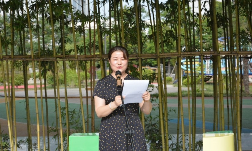 首先,薛晓娟部长就申搏劳动实践教育情况进行说明。长期以来,学校高度重视学生劳动教育,注重培养学生劳动观念和创新创业能力,学工部主动与校内多个单位对接,计划创建校内外多个劳动教育时间基地。附属幼儿园作为申搏学前教育重点学科专业实验实践教学基地,发挥着多个重要功能,本次基地的挂牌设立标志着学校劳动教育工作迈上了新台阶。她对到场参与具体劳动实践的同学们表示感谢,并提出三点要求,一是要强化劳动体验,扎实完成任务;二是要注意安全适度,加强生活技能;三是要充分利用资源,锻炼专业技能。她希望,同学们能够在劳动中解放心灵,陶冶情操,启迪智慧,发展人格。
