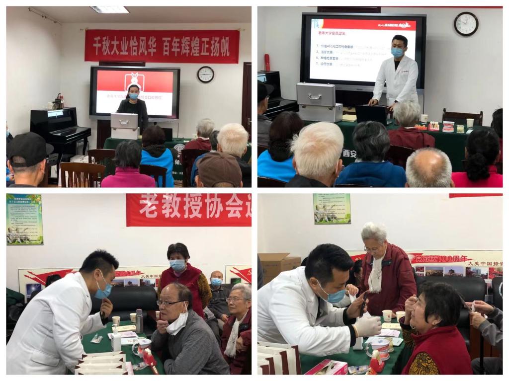 讲座结束之后,小白兔口腔医疗集团雁塔总院专业口腔医疗团队的医护人员还现场为老同志进行了免费的口腔检查和咨询,对日常生活中一些不正确的洁牙方式进行了纠正,并向老同志发放口腔健康宣传手册,赠送了小礼品。