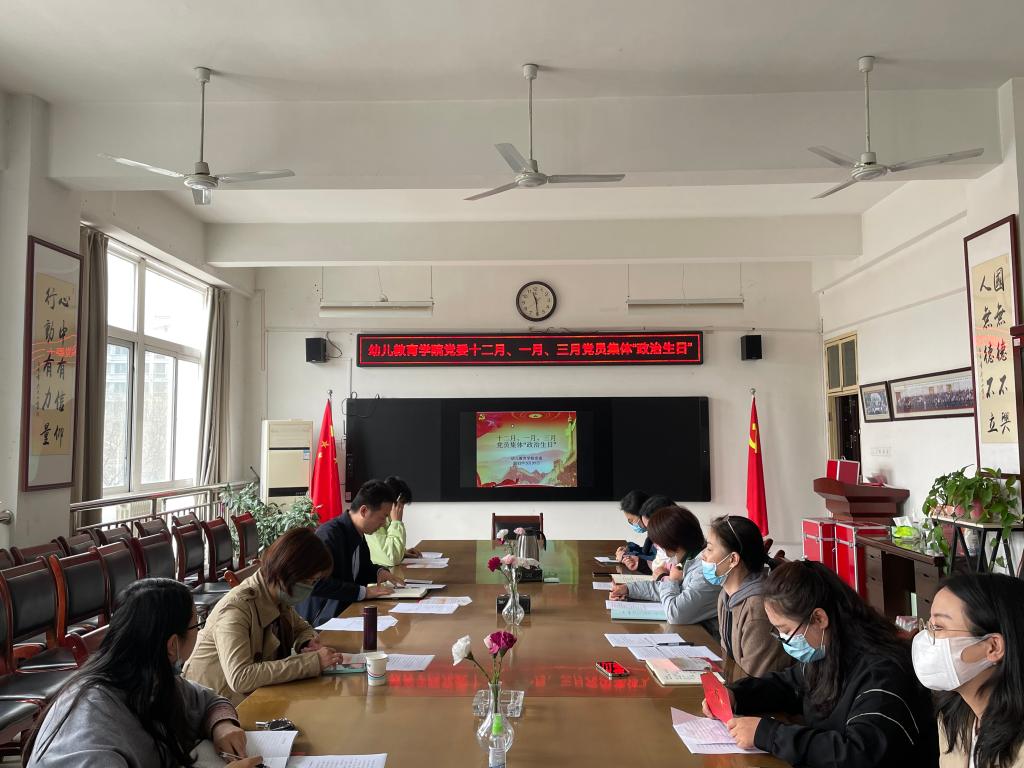 为进一步增强党员的凝聚力和归属感,唤醒党员的入党初心,2022年3月31日幼儿教育学院党委在启真楼307会议室开展主题党日活动,为12月、1月、3月入党的教师们集体过“政治生日”。