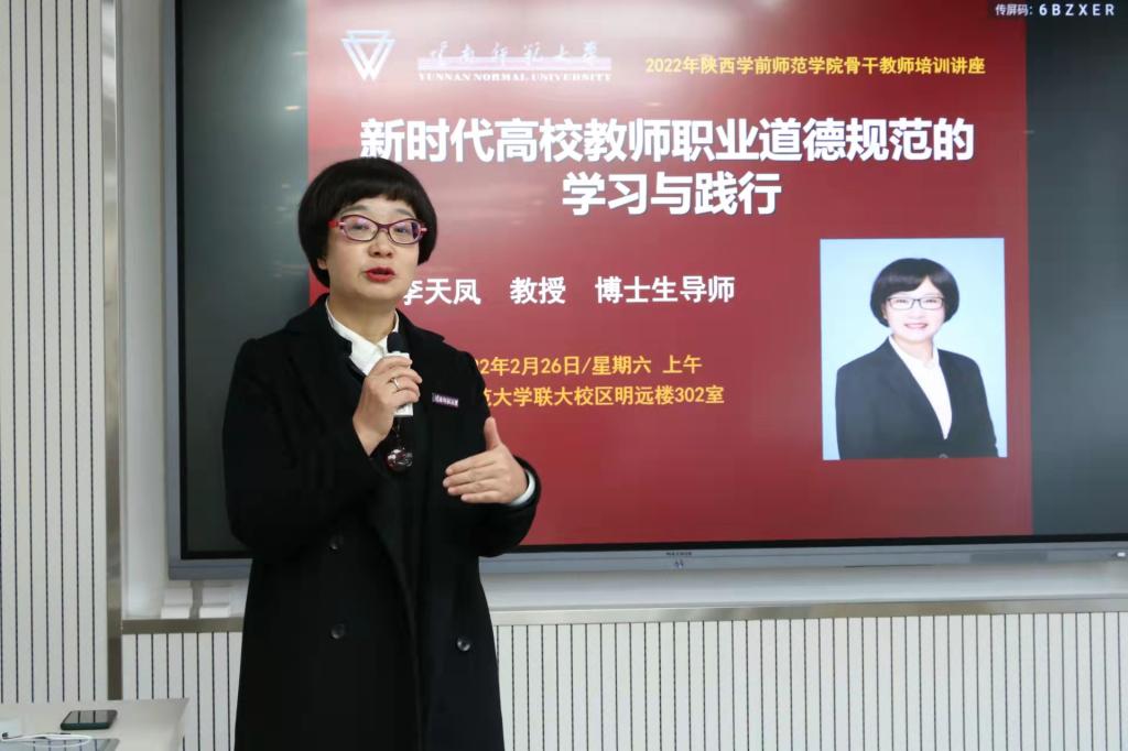 研修活动围绕教师专业素养展开,分五场次进行。第一场研修活动由云南师范大学博士生导师李天凤教授和陶云教授分别做“新时代高校教师职业道德规范的学习与践行”和“以积极心态应对教师压力”主题报告。两次报告互动较多,思考较多,学员反馈良好,纷纷表示报告内容对自身师德师风的形塑与加强具有极大的推动作用,并会在往后的教育生涯中做到:在教书育人中浇筑理想信念;在言传身教中践行道德情操;在学术自由与规范中增进学识;在潜心问道和关注社会中播撒仁爱。并且会用积极的心态面对教师工作中带来的各种压力,做到积极、乐观、笃定。