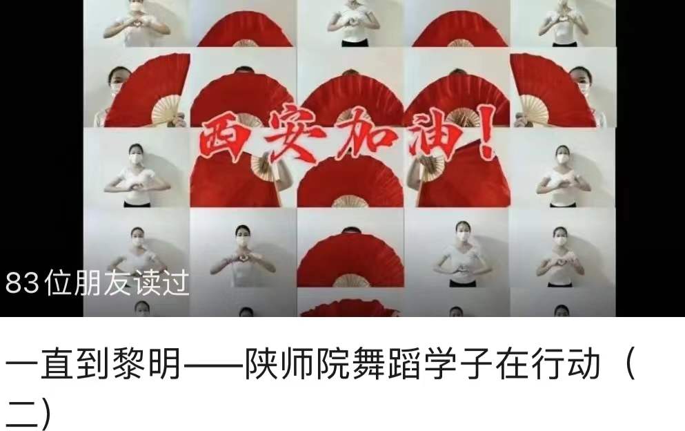 神禾舞蹈社团师生紧紧围绕专业特色,7名专业教师悉心指导180名社员共同完成“相信未来”、“一直到黎明”、“我们在路上”、“与爱同行”、“平凡英雄”、“和光同行”等8组抗疫舞蹈视频,优美动人的舞姿承载了师生以艺术之力温暖人心、传递大爱的信念。追梦合唱团制作“艺”起抗疫,共克时艰视频,用歌声致敬平凡岗位上的普通劳动者。相关作品被陕西省教育厅公众号、今日头条、西安新闻、陕西省文学艺术联合会等知名媒体转载,点击超2万余人次,持续扩大了社会影响力。学院神禾舞蹈社团正在精心制作“线上公益舞蹈小课堂系列活动”三期9个少儿舞蹈公益视频,面向儿童积极推广传承中华优秀传统文化,提升学生综合素质,强化专业能力。