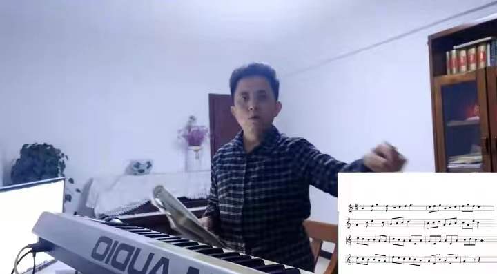 音乐学院所有任课教师,以饱满的热情和新的教学方式,在自己家里,用电脑、手机等现代传播手段,打开琴盖,换上舞鞋,调整音弦,翻开歌谱------开始了疫情期间的第一堂课。