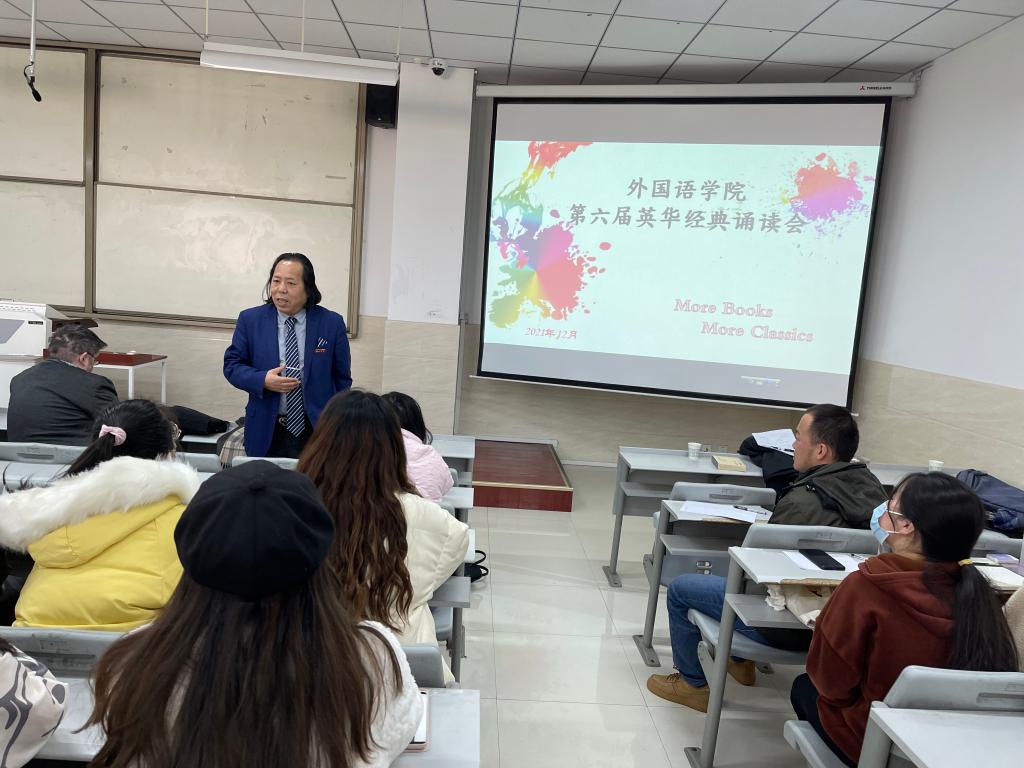 胡教授指出诵读《红星照耀中国》这部经典作品对于当代青年学生了解中国共产党的历史、发扬共产党人精神提供了良好的契机。他鼓励在座的英语专业和翻译专业学生,应当积极学习“斯诺精神”,担负时代使命,以塑造中国形象,传播中国声音为己任,发挥专业所长,积累翻译作品,讲好身边的故事,讲好陕西故事,讲好中国故事,勇于向世界介绍当代中国。