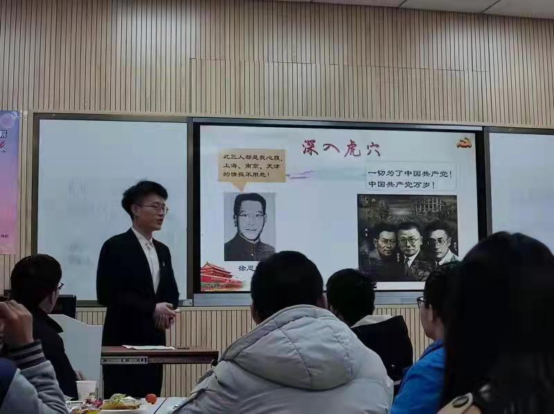 在“四史”读书沙龙活动中,袁忠康、李佳星、杨维隆等6名学生党员分组围绕着建党精神、长征精神、抗美援朝精神做了《时代变迁,精神永存》、《传承长征精神,走好时代新路》、《我们的传家宝—伟大的抗美援朝精神》的主题发言。李建国、黄振平、黄彦震三位老师结合专业教学分别做了精彩点评并分享了自己的所教所悟所得。今年是建党百年、也是红军长征胜利85周年,也是习近平总书记发表纪念中国人民志愿军抗美援朝出国作战70周年大会重要讲话后的第一年,通过读书学习和研讨交流,增强了师生对建党精神、长征精神和抗美援朝精神内涵的深刻理解,从而更加坚持首创精神,坚定理想信念,担当时代使命,走好新时代的长征路,为实现第二个百年奋斗目标和中华民族伟大复兴不懈奋斗。读书研讨结束后,张子琦、刘欣烨、杜忠艳3名大学生宣讲团成员做了主题党史宣讲,为大家展现了新民主主义革命时期革命先烈们惊心动魄的革命事迹和为新中国成立所做出的卓越贡献,在场的师生深受鼓舞和激励。