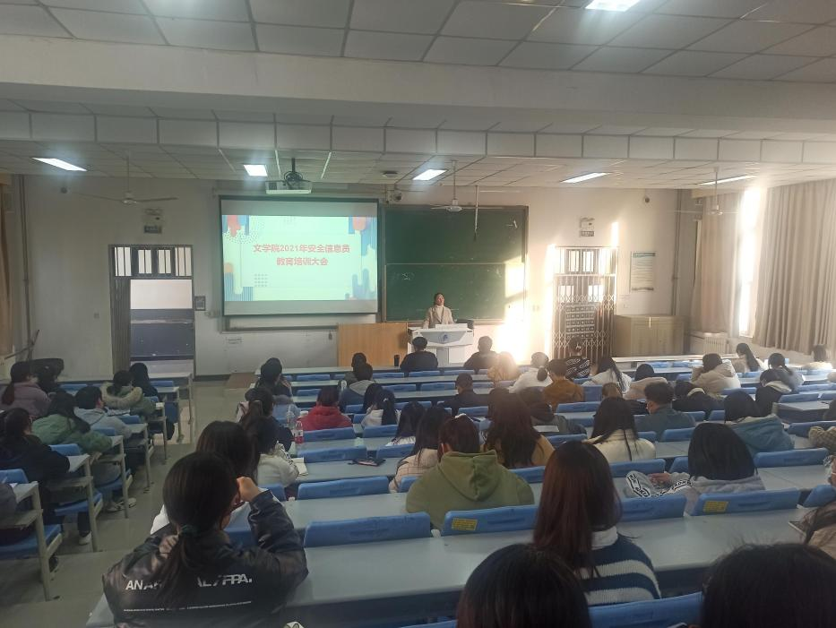 11月17日下午,文学院在博文楼C2阶梯教室召开安全信息员教育培训大会,院党委副书记庞曦在会上作专题讲座。她从“工作机构与成员、安全工作内容和相关规定、安全信息员的职责”三个部分展开宣讲。她首先介绍了学院安全工作机构和成员构成,明确了学生安全信息员的身份和职责;随后,重点从“住宿管理、日常纪律管理、网络安全管理、心理健康管理、疫情防控管理”五个方面详细阐述了学院安全管理工作的内容,解读了2021版《学生手册》中涉及学生安全管理的相关规定,并结合多个现实案例对学生进行了安全用电、防范网络诈骗、心理危机预防等安全知识教育;最后,她详细说明了安全信息员的具体职责,强调了安全信息员工作对学院安全管理工作的重要性。