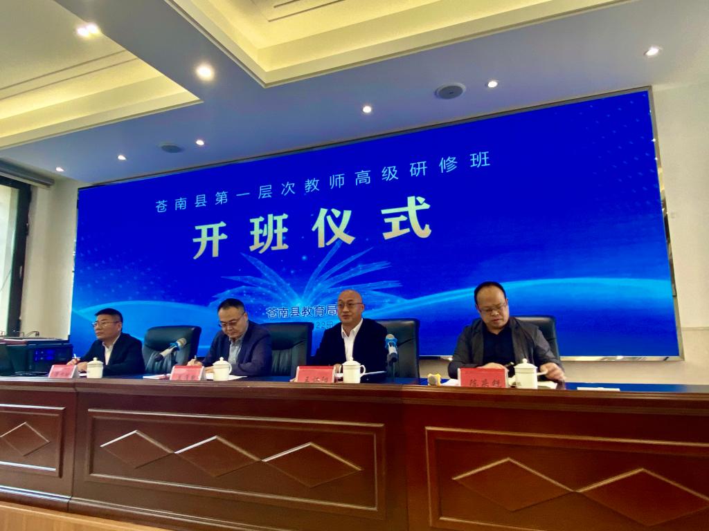 受浙江省温州市苍南县教育局与教师发展中心委托,由申搏区域教育发展研究院承办的“苍南县第一层次教师高级研修班”启动仪式,于10月22日下午在苍南县外国语学校隆重举行。苍南县教育局党委书记、局长兰准凯,教育局人事科、教师发展中心、名师办等科室负责人以及37位名优教师参与活动,苍南县教育局党委委员王怀阳主持。