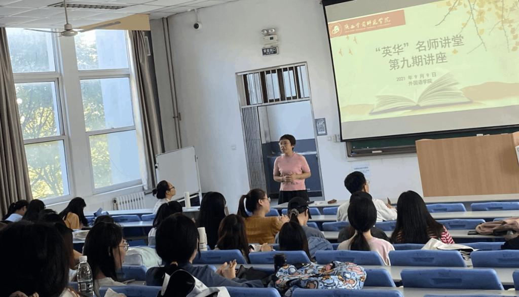 9月9日,在博文楼B1阶梯教室,宝鸡市教育局资深英语教研员任军利老师应邀为我院2022届毕业生做了题为“思维导图式英语听说、阅读课实操技巧”的专题通识培训讲座。讲座由我院张慧军院长主持,并和张莉娟副院长听完整场报告。讲座中,任军利老师分别以人教版八年级下册Unit 1、人教版八年级上册Unit 2和人教版九年级Unit 13为例,手把手教学生如何在英语听说课和阅读课中利用思维导图进行教学设计。任老师强调正确的做法一定是画课文思维导图,先复述(说)再整理(写)。最后以一节宝鸡市新建路中学赵陶玲老师生动的微型示范课视频分析结束了此次讲座。在义务教育段的英语课堂中使用思维导图,不仅可以帮助学生建立完整的知识体系,激发学生思维,尤其是发散思维,还可以促进教师的教学,促进教师自身的知识构建并增强教学的针对性。这堂讲座实操性极强,学生在一个个课例中一次次地体会思维导图在教学中地运用,受益匪浅。