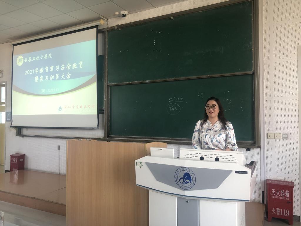 其次,我院与9月13日下午报告会之后,开展了师范生实习动员大会。参加本次会议的有数学与统计学院党总支副书记(主持工作)田彩萍、实习带队教师和全体2022届师范生。会议由数学与统计学院副院长丁剑洁主持。