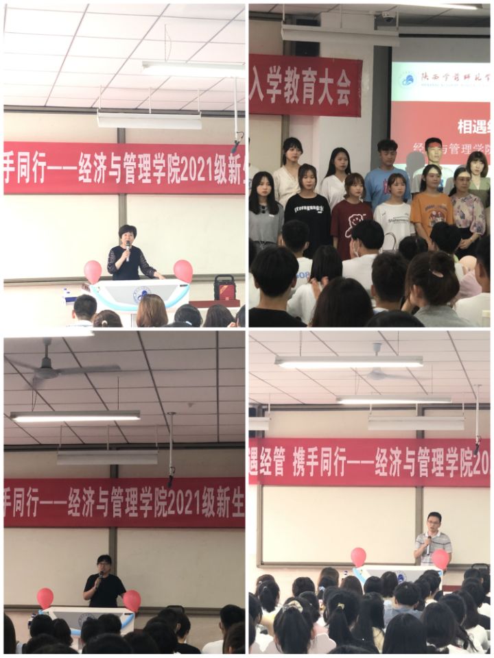 9月15日下午,学院在长安校区智慧楼阶梯3教室举办了“相遇经管 携手同行”2021级新生入学教育大会。会议由学院党委副书记陈璐主持。院长崔洁、副院长刘家瑛、副院长陈秀端、系主任时媛、李妮、徐晗、张薇以及教师代表霍云霈出席了本次大会。2021级王泽宇同学、2019级王愈文同学分别代表新老生进行了发言,深切表达了作为经管院学子的志向与目标。地理与城乡规划系教师霍云霈作为学院教师代表进行了发言,希望新同学们尽快融入大学校园,学会相处,学会自立,学会包容,在宝贵的大学时光里艰苦奋斗,努力拼搏,实现人生真正的蜕变。副院长刘家瑛在大会上系统介绍了各专业人才培养方案、专业课程体系、学生学籍管理制度、教学管理规定等重要内容,向同学们提出了有关大学学习的宝贵意见。学院院长崔洁代表全院师生欢迎2021级新生来到经管院这个大家庭,希望同学们志存高远,厚德善行;勤俭探索,脚踏实地;勇于实践,全面发展,在陕师院度过人生中最精彩、最幸福、最美好的时光。大会最后,学院副院长陈秀端以及各系系主任为新生代表集体佩戴校徽。