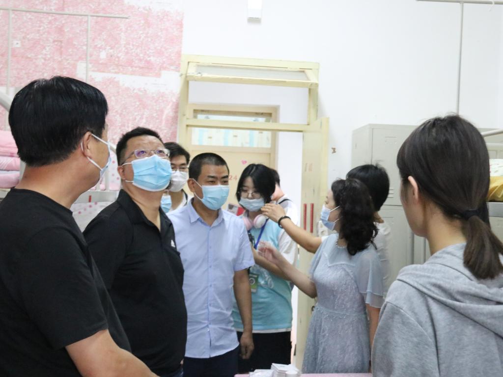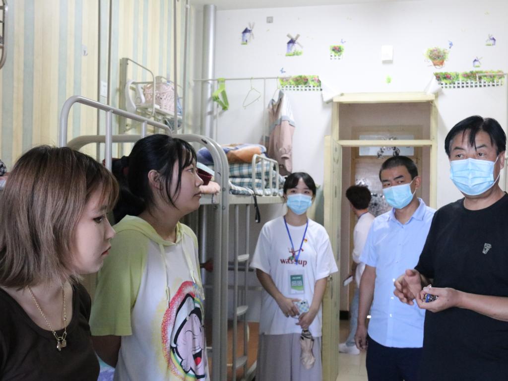 2021年9月14日上午9:30,信息工程学院党委书记白建超、院长薛鸿民、副院长王强、邓志龙、党委副书记黄薇、学工办主任张迪、新生辅导员傅瑜及学生会主席团深入学生宿舍看望我院数字媒体技术、数据科学与大数据技术、物联网工程专业新生,了解新生住宿环境和报到入学后适应情况,并欢迎他们加入信工院大家庭。每到一间宿舍,院领导都会亲切地与学生交谈,了解学生的家庭情况,与同学们就校园生活、家乡习俗、饮食习惯、来校适应情况展开热烈交流,也提出了几点温馨提示,提醒同学们要注意个人生命财产安全、安全用电、随手锁门、保管好个人财物等;并提醒大家,在疫情仍然不稳定的情势下,要注意个人和寝室卫生。同时,院领导鼓励新同学要尽快适应大学生活,舍友之间要团结友爱,多参加各类学生活动,丰富大学生活。