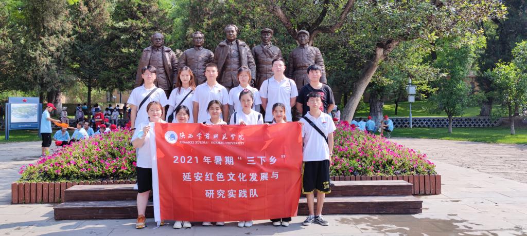 2021年7月15日,历史文化与旅游学院暑期“三下乡”社会实践队在学校的统一安排下,由学院带队指导老师吉辉带领参加社会实践的15名学生队员奔赴延安,开展了为期半个月的以“庚续红色血脉,汲取奋进力量”为主题的延安红色文化发展与研究实践调研活动。历史文化与旅游学院社会实践队以习近平总书记“七一”重要讲话精神和来陕重要讲话中关于延安精神的重要论述为指导,充分发挥专业优势,在红色圣地延安各红色纪念场馆开展以延安精神为主题的参观学习、实践调研、党史宣讲、红色文化研究以及志愿服务等社会实践活动。
