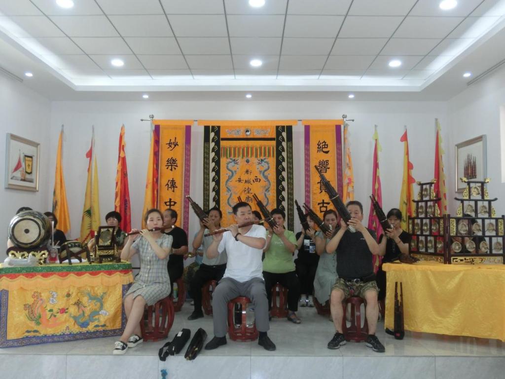 西安都城隍庙鼓乐社社长张昭老师热情接待了同学们,并就西安鼓乐历史、传承和西安都城隍庙鼓乐社历史、外演情况做详尽介绍。作为已有六百年历史,西安地区唯一一家道派乐社,目前面临西安鼓乐的推广和传承问题。张社长谈到,都城隍庙鼓乐社成员年龄都偏大,严重缺少年轻力量加入,而且虽然开展了相关活动培养更年轻的人群,但目前效果不佳。他特别邀请申搏秦风鼓乐社团的学生们,能从专业角度助力西安鼓乐这一本土音乐文化的传承。