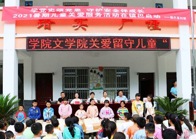 7月16日上午,原本寂静的汉中市镇巴县三元镇凉桥小学变得热闹起来,留守儿童代表收到了由镇巴县政府与sunbet申搏官方网站文学院赠送的生活、文化用品及《新华字典》等图书,为期12天的文学院2021年大学生志愿者暑期文化科技卫生“三下乡”社会实践活动序幕正式拉开。