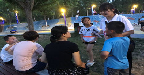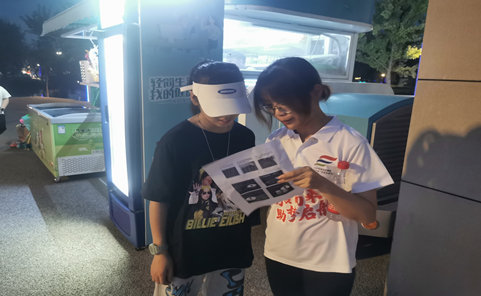 活动期间,志愿者们以2~3人为一组,在樊川公园内针对老人、小孩、带孩子的父母等,进行宣传推广工作。尤其是青少年儿童,正处于对世界的探索期,对一切充满好奇,及早地普及禁毒宣传,是防范于未然的最佳途径。