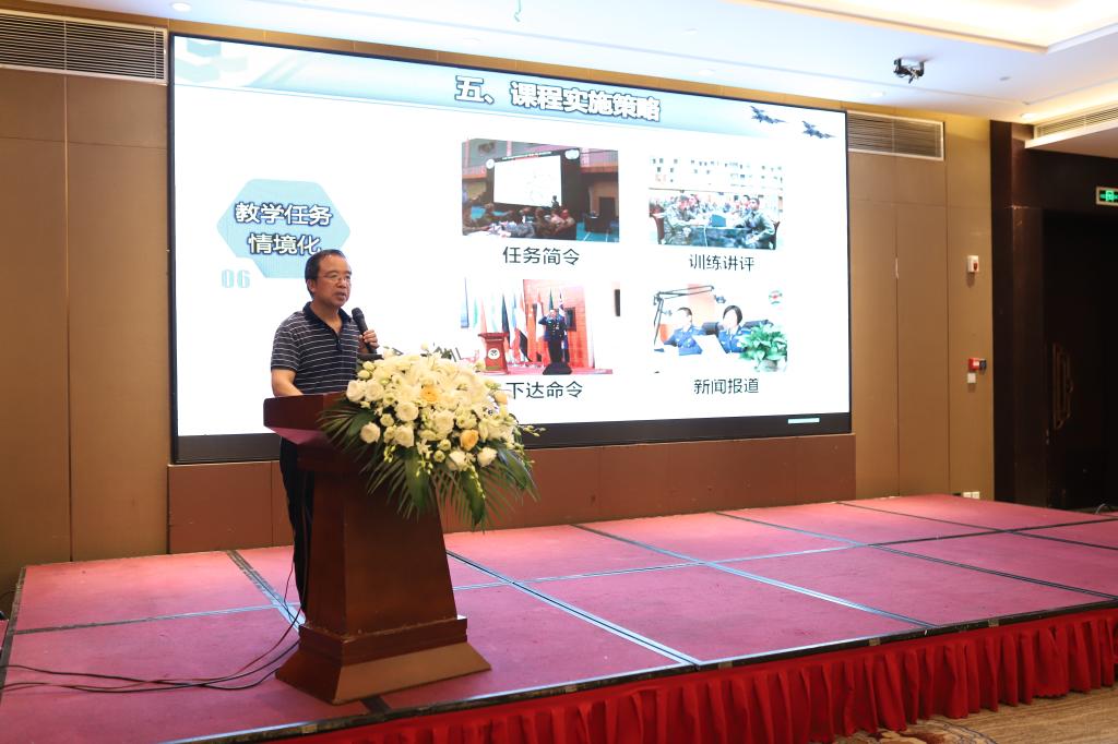 首先,来自空军工程大学的田文杰教授就大学英语一流课程建设进行了经验分享,作了“大学英语教学实践与探索”主题发言。作为大学英语课程建设负责人以及大学英语教学团队负责人,田教授从课程性质地位目标、课程内容设计、课程教学环境、课程教学模式、课程实施策略、教学组织过程、课程教学评价这七个方面进行阐述。田文杰教授的报告全面展示新形势下他对大学英语课程的宏观构思和顶层设计,让大家看到为凸显学校军事特色,团队成员在大学英语教学中所做的深入思考、大胆尝试和不懈努力。充分展示在他带领下的课程团队和大学英语课程在军事院校中的使命和担当。他们的做法对于申搏大学英语教学如何结合学校地方性、师范性和应用型人才培养目标,提升质量办出特色极具启示意义,对申搏大学英语一流课程建设提供了指导和遵循。