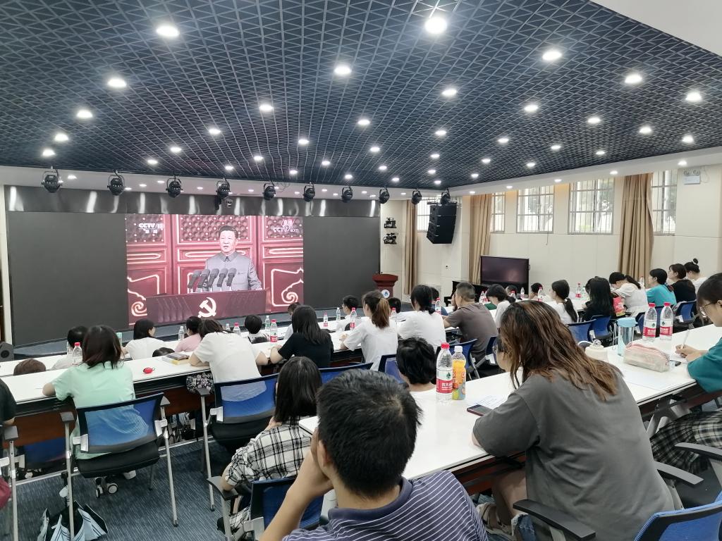 2021年7月1日8时,庆祝中国共产党成立100周年大会在北京天安门广场隆重举行,中共中央总书记、国家主席、中央军委主席习近平出席并发表重要讲话。为及时全面了解大会盛况,认真学习贯彻习近平总书记重要讲话精神,教务处、历史文化与旅游学院领导班子和师生党员、积极分子在积学楼A1师范生教学技能中心集中收看庆祝大会实况转播,认真聆听习近平总书记重要讲话,共同庆祝中国共产党成立100周年。省委党史学习教育第十五巡回指导组的有关领导莅临参加并全程指导。